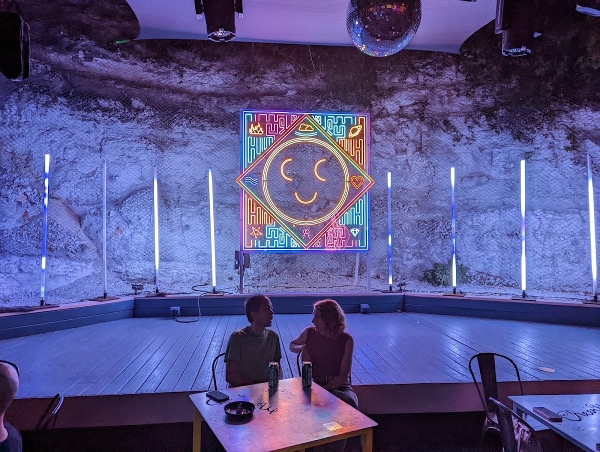 From the moment you step inside, the eclectic and electric atmosphere envelops you. With its outdoor seating adorned with twinkling string lights and a cozy patio setup, it's the perfect place for friends to gather and enjoy one another's company under the stars. Seating areas are designed for everyone, whether you're looking to chill out and make new friends or enjoy breathtaking performances on stage.
